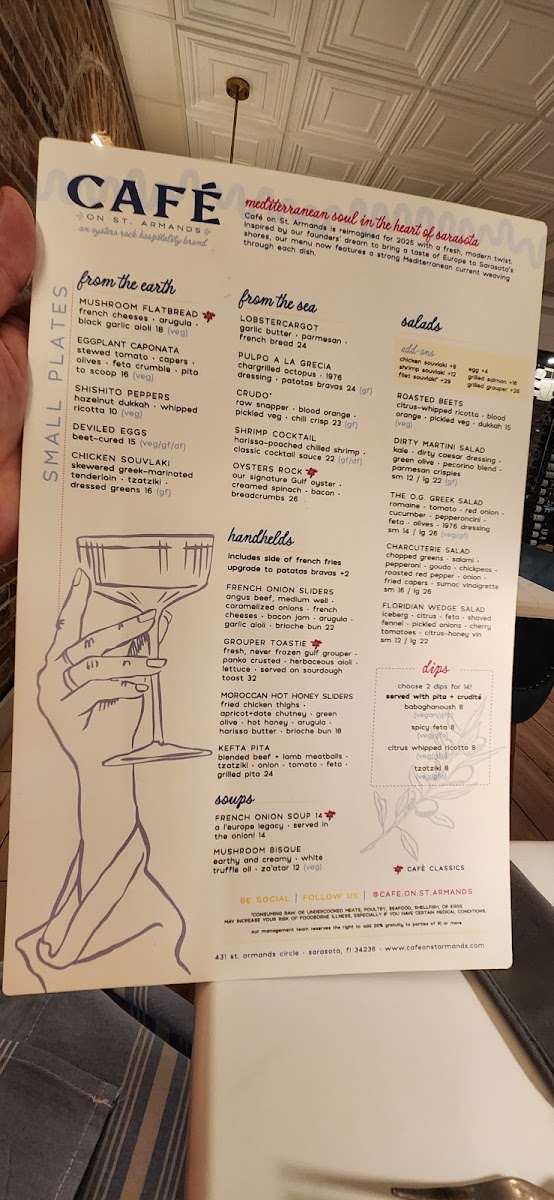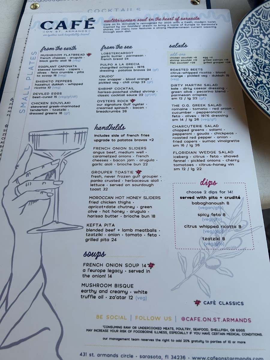 Café on St. Armands offers a vibrant Mediterranean menu that captures the essence of fresh, handcrafted flavors right in the heart of Sarasota. Highlighted by a curated selection of bold, refreshing cocktails like the Blood Orange Aperol Spritz and the zesty Paloma, the beverage program elevates the dining experience with creative blends and quality spirits.