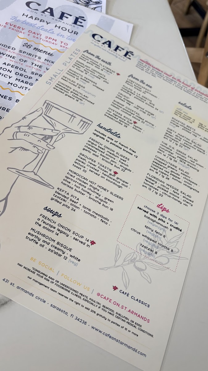 What truly makes Café on St. Armands shine is its harmonious blend of meticulous service, sophisticated flavors, and a warm atmosphere. From breakfast through dinner, every visit feels like a special occasion—an unmistakable Mediterranean soul nestled on St. Armands Circle.